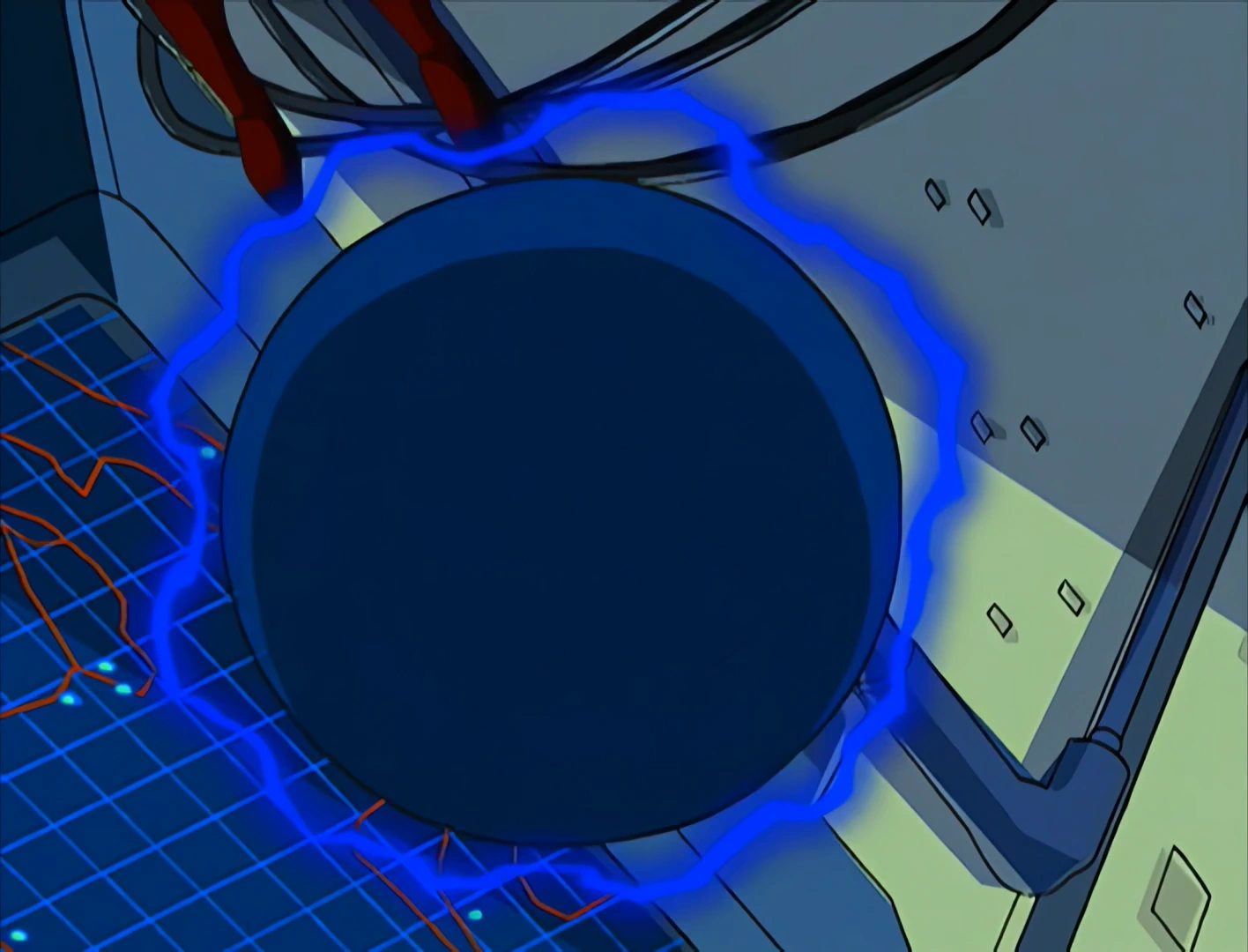 Described as a "big blue marble" by Jade, the Arcanum of Chi is spherical in shape, resembling a large blue-colored orb. Each half of the orb reveals a geode-like cross-section inside, indicating that the Arcanum is crystalline in nature.