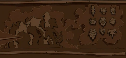 The first of the nine Oni Masks was discovered in neighboring China where it was eventually claimed by Shendu, the Demon Sorcerer of Fire. Upon unlocking its power, Shendu gained control of the mask's respective tribe of Shadowkhan. The Fire Demon employed a method of drawing power from the mask without having to wear it, effectively allowing him to summon his Shadowkhan without being corrupted by the mask itself. After eventually being turned to stone at the hands of his own subjects, the Demon Sorcerer came to rely heavily on the Shadowkhan's services, particularly during his quest to reclaim the Talismans. In the nine centuries following his imprisonment, the mask itself remained hidden within the ruins of Shendu's Palace outside of Hong Kong.