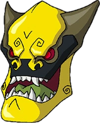 Each Oni Mask was crafted in the likeness of the Oni it was intended to imprison. Like the Oni themselves, the masks resemble fierce demonic creatures from Japanese folklore. The Oni Masks are typically horned and often feature a wide-open mouth displaying a set of teeth with a prominent pair of curved fangs.