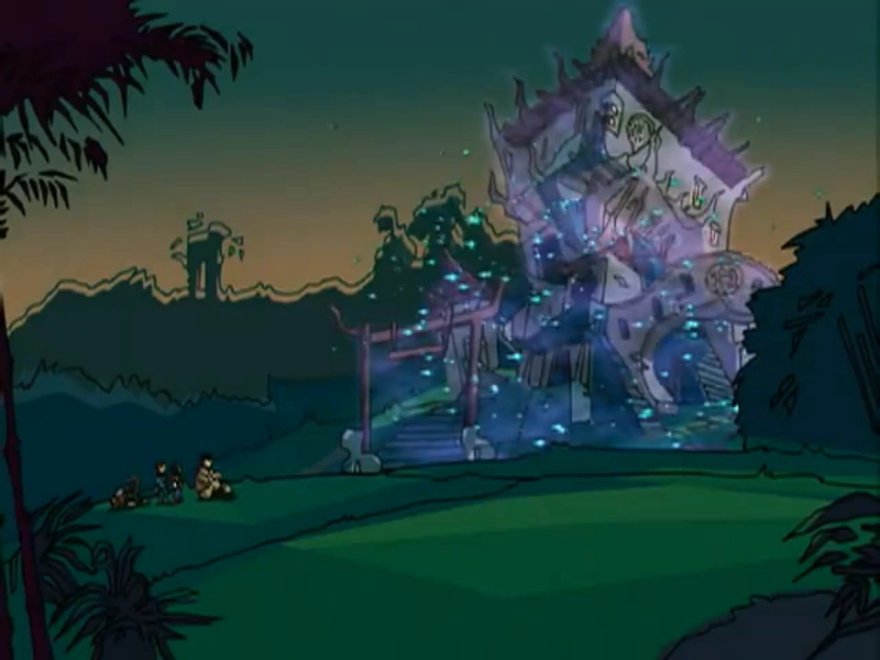 The three of them are safe, and the inscription on Jackie's palm fades. Xu Lin expresses her gratitude for Jackie's and Jade's help. Jackie reveals that the Scroll of Hung-Chao was destroyed during the fight. Jade insists on redrawing the symbol, but Jackie tells her no and to focus on school work.